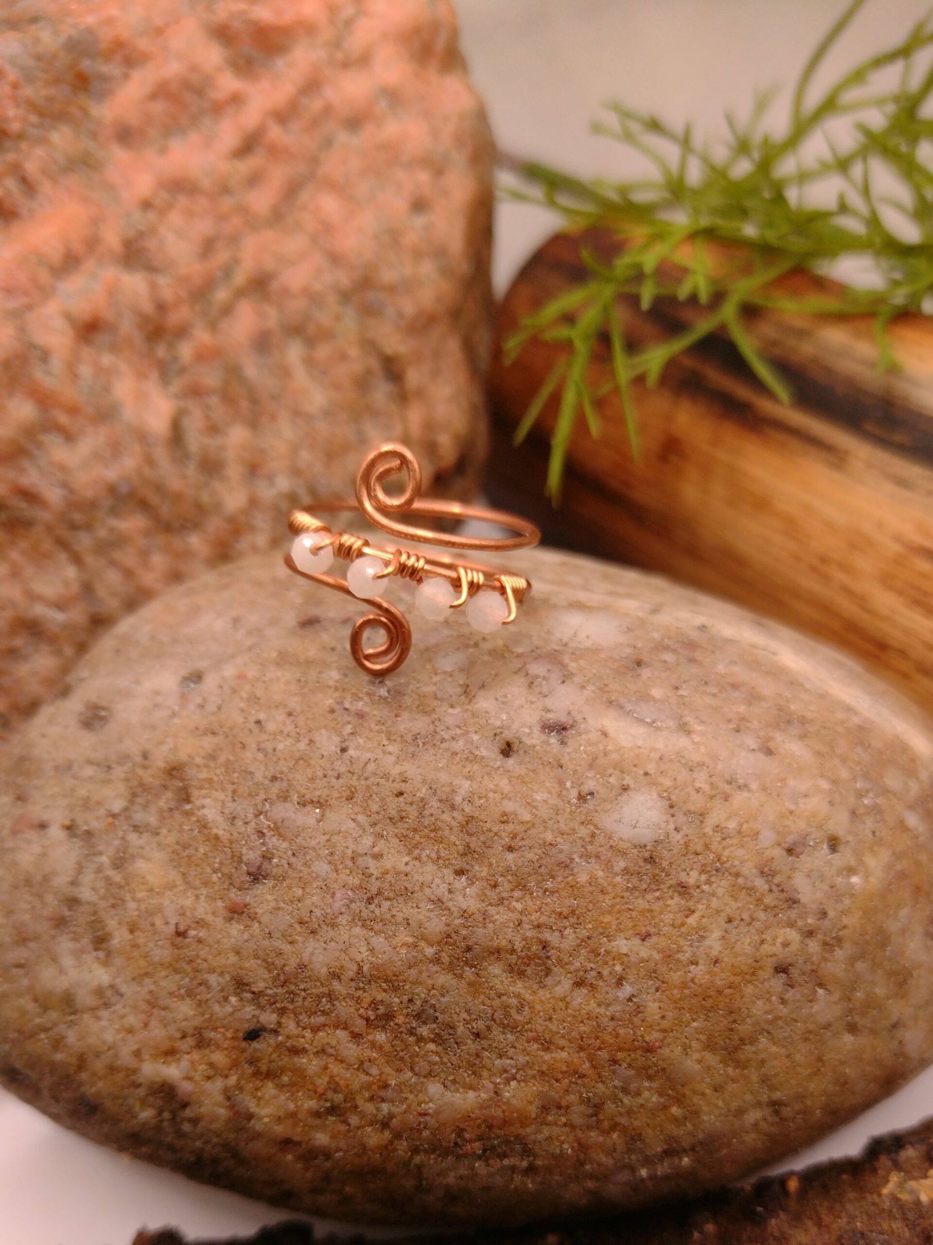 Pierścionek z kolekcji „Dotyk Natury” powstał dla osób, które wybierają biżuterię o czystej i harmonizującej energii. Wykonuję go ręcznie z miedzi, metalu znanego z naturalnego przewodnictwa i równowagi energetycznej. Delikatna forma lekko oplata palec i dopasowuje się do niego dzięki regulowanemu rozmiarowi.