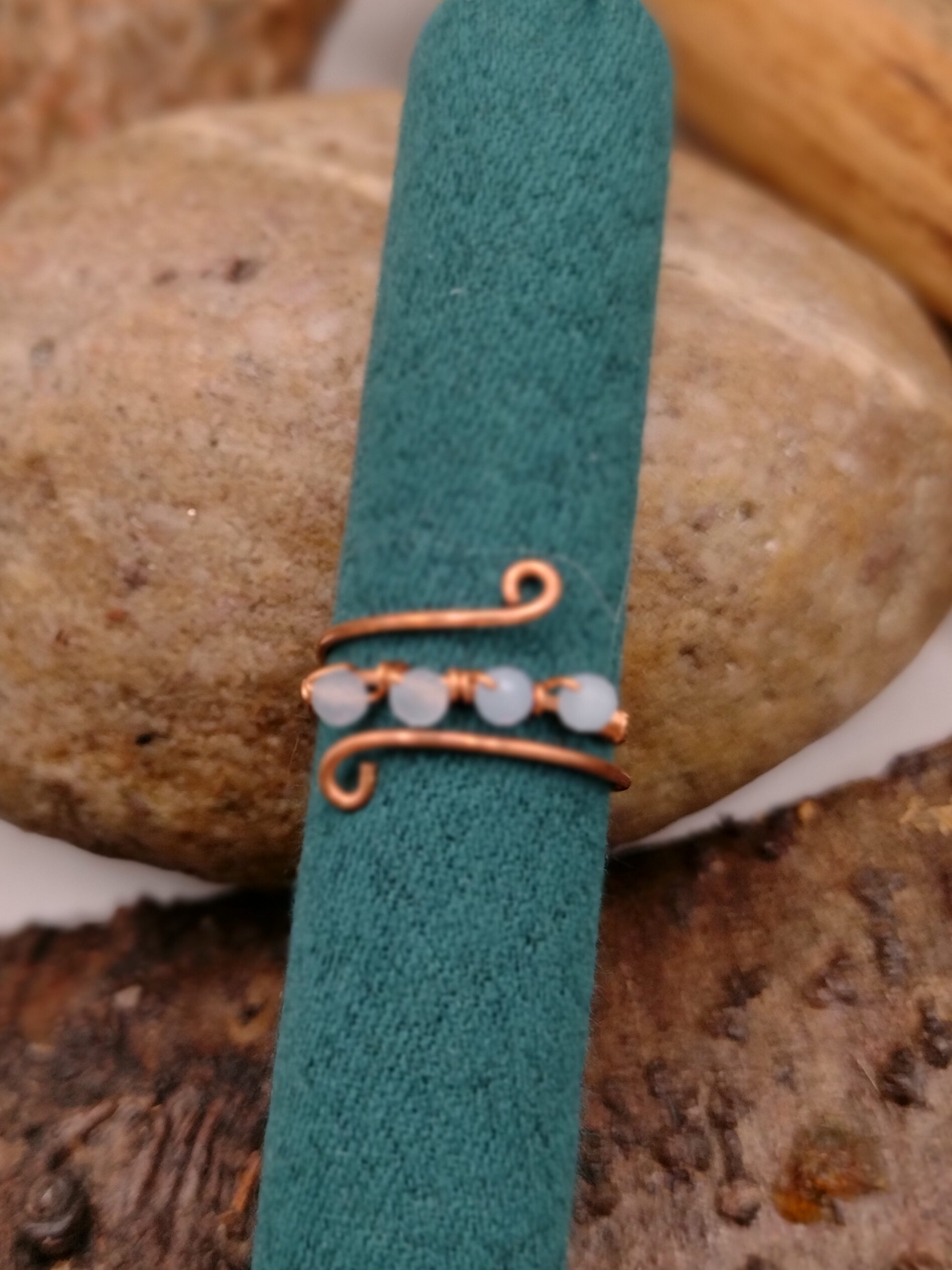 Pierścionek z kolekcji „Dotyk Natury” powstał dla kobiet, które wybierają delikatną biżuterię z naturalnym znaczeniem. Wykonuję go ręcznie z miedzi, metalu znanego z dobrego przewodnictwa energetycznego. Lekka forma subtelnie oplata palec i dopasowuje się do niego dzięki regulowanemu rozmiarowi.